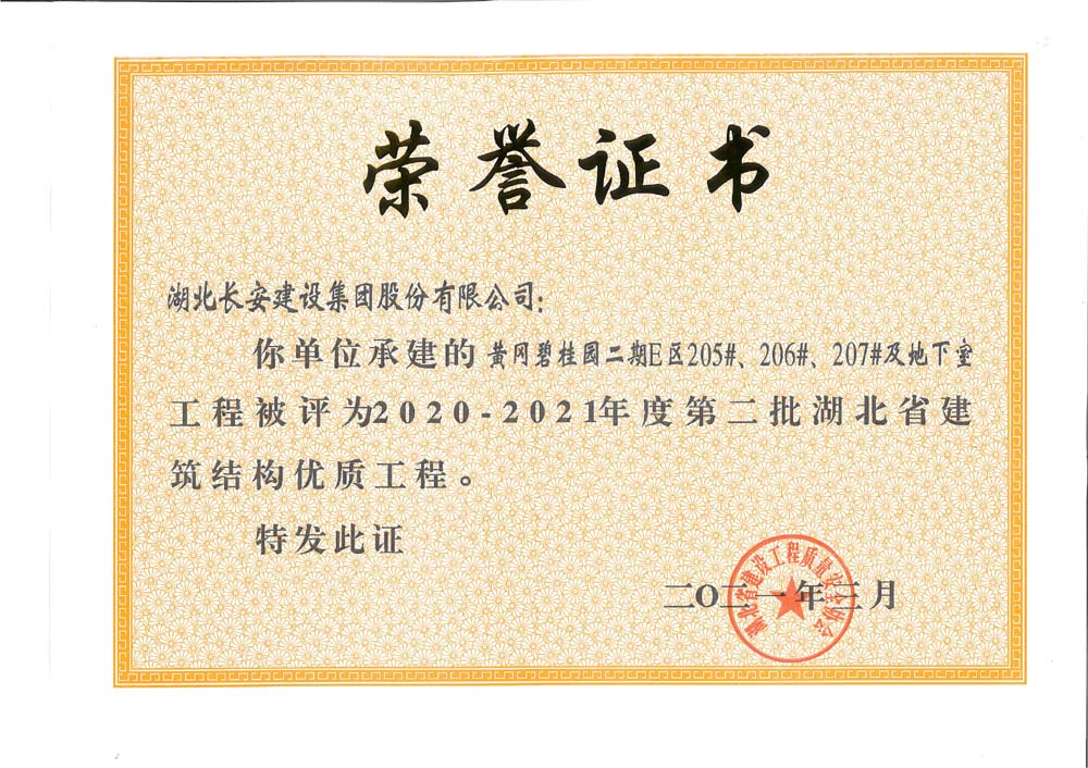 黃岡碧桂園二期E區205#、206#、207#及地下室2020-2021年度第二批湖北省建筑結構優質工程