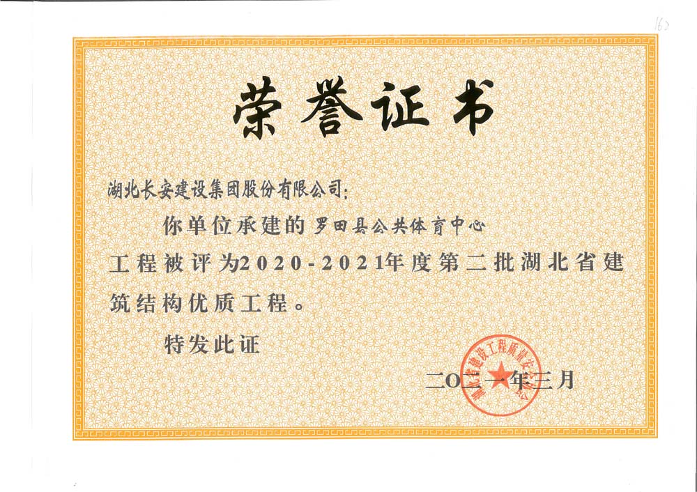 羅田縣公共體育中心2020-2021年度第二批湖北省建筑結構優質工程