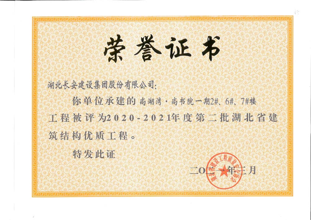 尚湖灣·尚書院一期2#、6#、7#樓2020-2021年度第二批湖北省建筑結構優質工程
