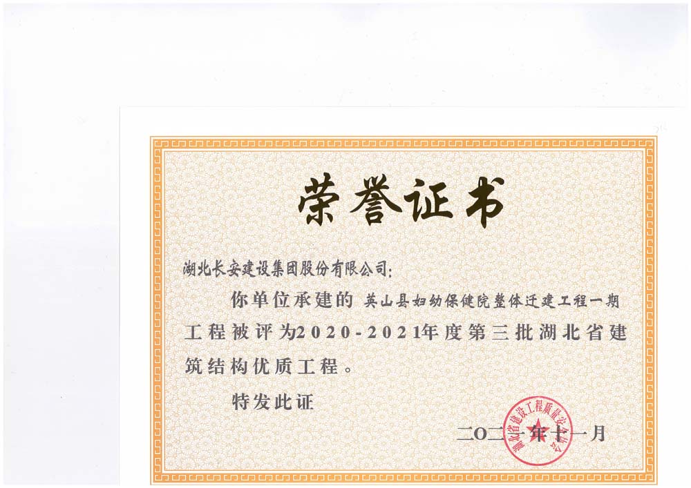 麻城市公共衛生中心等8個工程項目榮獲2021-2022年度第三批湖北省建筑工程安全文明施工現場