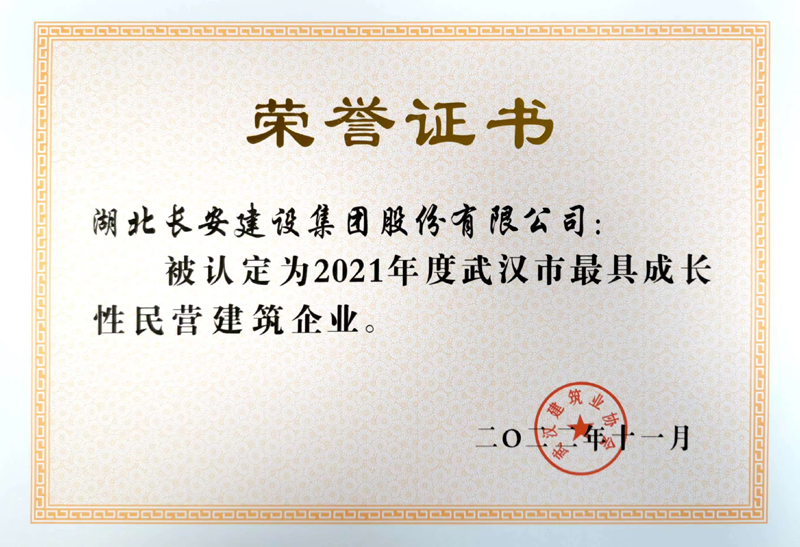 集團公司獲評2021年度武漢市最具成長性民營建筑企業