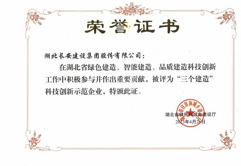 湖北省住建廳授予集團公司“2022年度重要貢獻建筑企業”榮譽稱號
