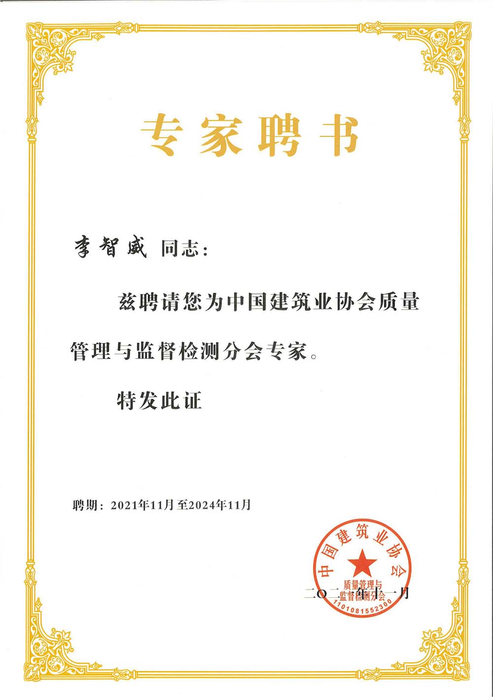 李智威被聘為中國(guó)建筑業(yè)協(xié)會(huì)質(zhì)量監(jiān)督檢測(cè)分會(huì)專(zhuān)家