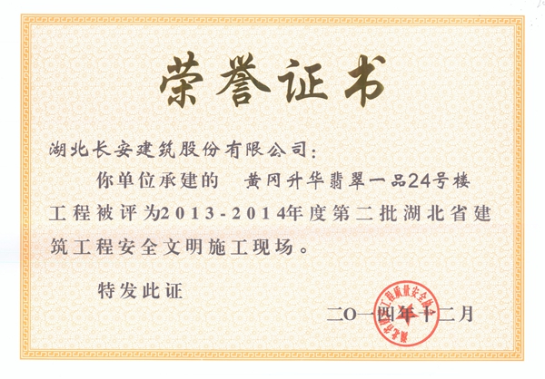黃岡市教育優秀人才安居小區1-3#樓被評為2013-2014年度省建筑工程安全文明施工現場