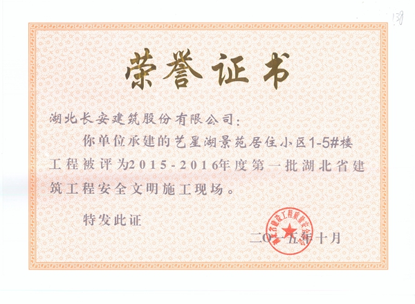 藝星湖景苑小區1-5號樓安全文明現場證書