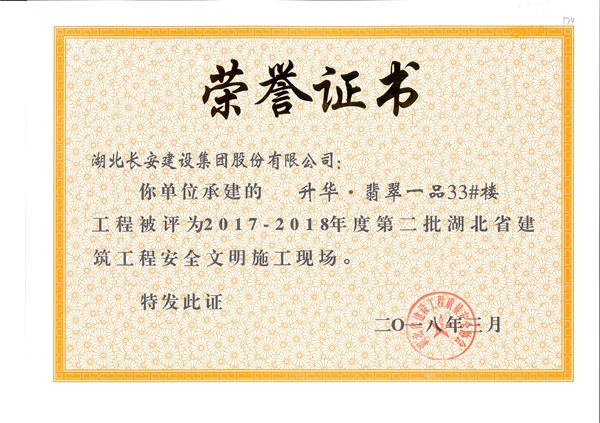 升華翡翠一品33#樓2017-2018年度第二批湖北省建筑工程安全文明施工現場