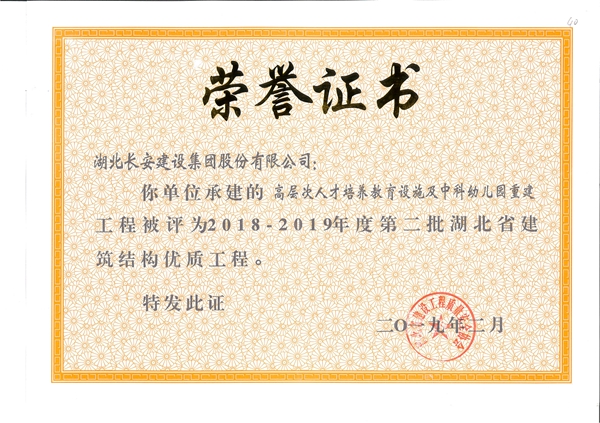 高層次人才培養教育設施及中科幼兒園重建工程被評為2018-2019年度第二批省結構優質工程