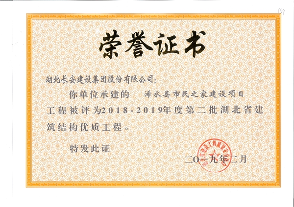 浠水市民之家建設項目工程被評為2018-2019年度第二批省結構優質工程