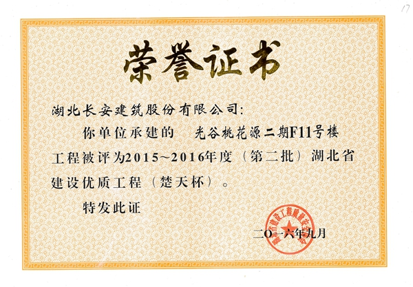 光谷桃花源二期F11號樓省優質(楚天杯)2016