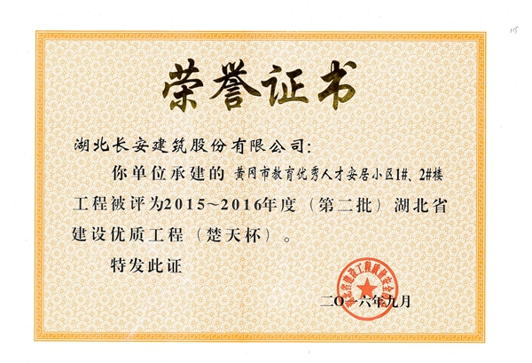 黃岡市教育優秀人才安居小區1#、2#樓省優質(楚天杯)2016