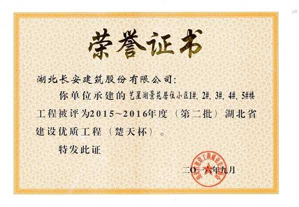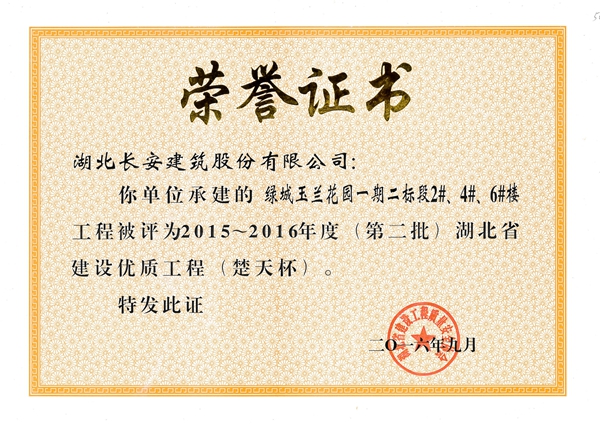 綠城玉蘭花園一期二標段2#、4#、6#樓省優質(楚天杯)2016