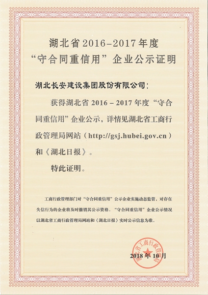 (大證)湖北省2016-2017年度“守合同重信用”企業(yè)公示證明2018
