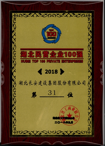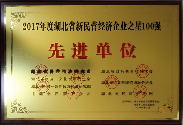 2017年度湖北省新民營經(jīng)濟企業(yè)之星100強先進單位2018