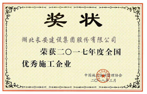2017年度全國優(yōu)秀施工企業(yè)獎牌