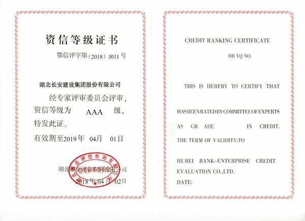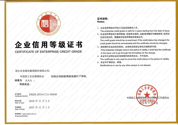 2018年度工程建設(shè)企業(yè)信用等級AAA(獎牌)