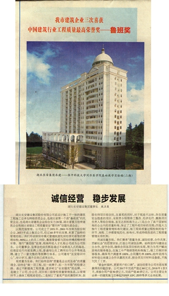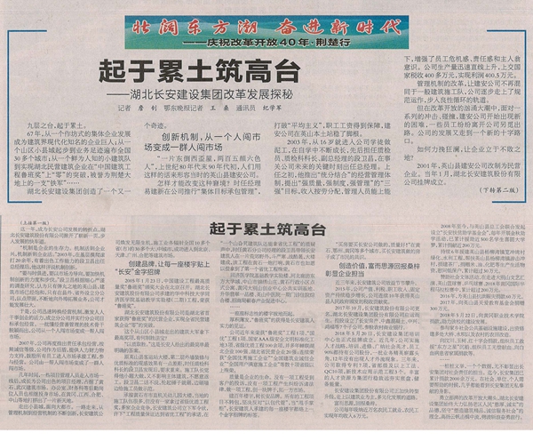 湖北長安建設(shè)集團改革發(fā)展探秘(黃岡日報20181015)