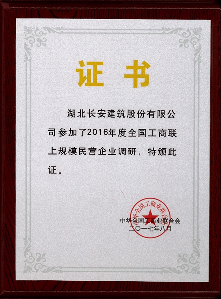 參加2016年度全國工商聯(lián)上規(guī)模民營企業(yè)調(diào)研頒證