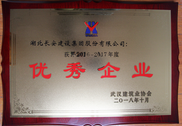 公司獲評2016-2017年度武漢地區(qū)建筑業(yè)優(yōu)秀企業(yè)(獎牌)