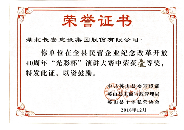 公司在全縣民營企業(yè)紀(jì)念改革開放40周年“光彩杯”演講大賽中榮獲一等獎