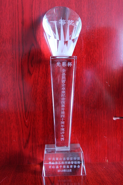 全縣民營企業(yè)紀(jì)念改革開放40周年“光彩杯”演講大賽中榮獲一等獎(獎杯)