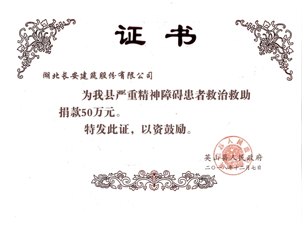 為縣嚴(yán)重精神障礙患者救治助捐款50萬元(2018)