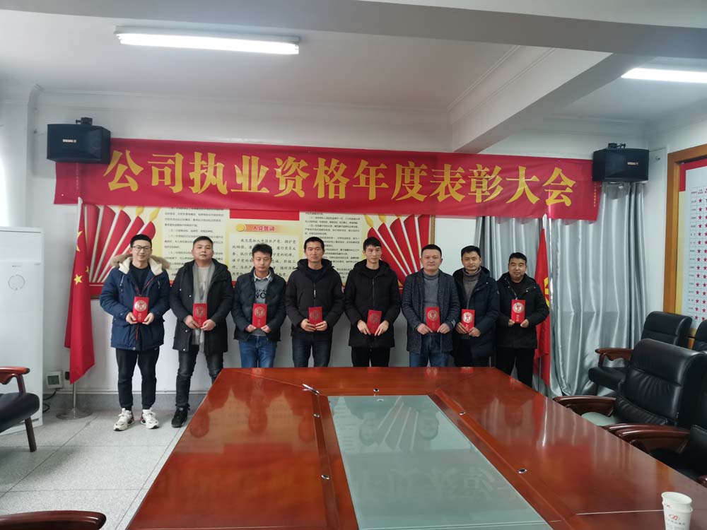 1月26日上午,公司執業資格年度表彰大會在集團四樓會議室召開,集團副總柯善群、監事會主席余天祥、財務經理胡金星等領導參加會議,董事長段衛昌出席會議并作重要講話,行政經理石柱主持。