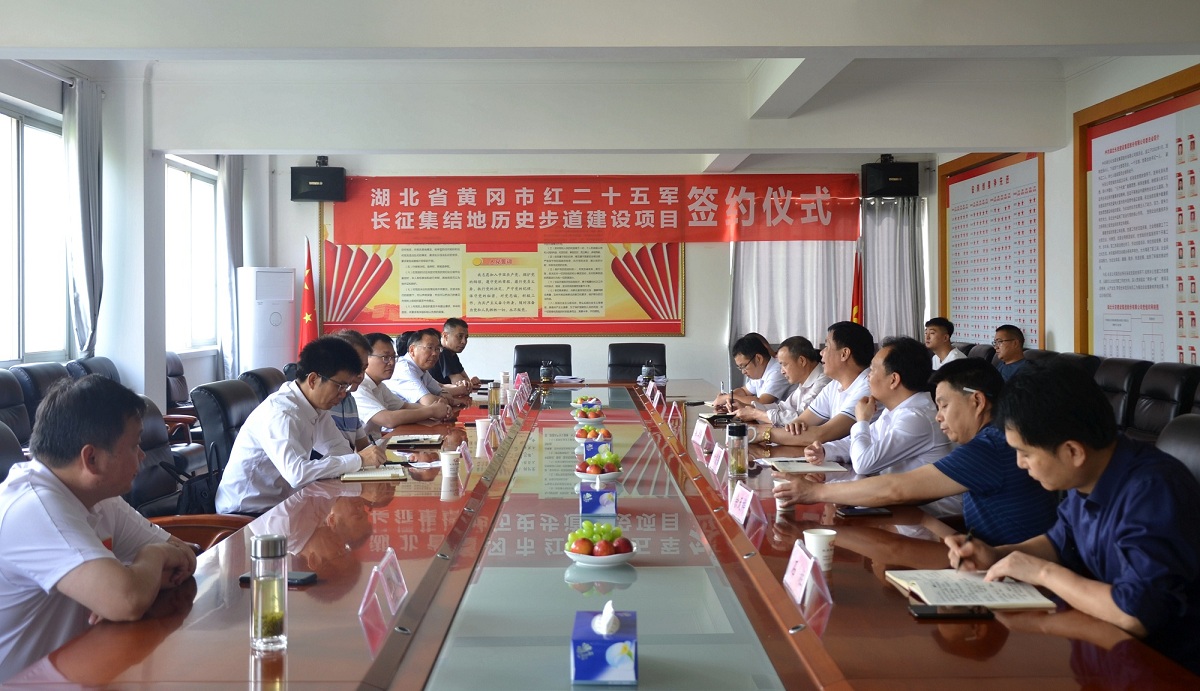 5月27日上午八點半,湖北省黃岡市紅二十五軍長征集結地歷史步道建設項目簽約儀式在集團總部英山辦公區四樓會議室舉行,湖北大別山國家級自然保護區英山管理局局長、縣九昇集團黨委書記、董事長祝曙洺,英山縣文化和旅游局局長余智,集團黨委書記、董事長段衛昌,總經理葉發保等近20位領導出席。
