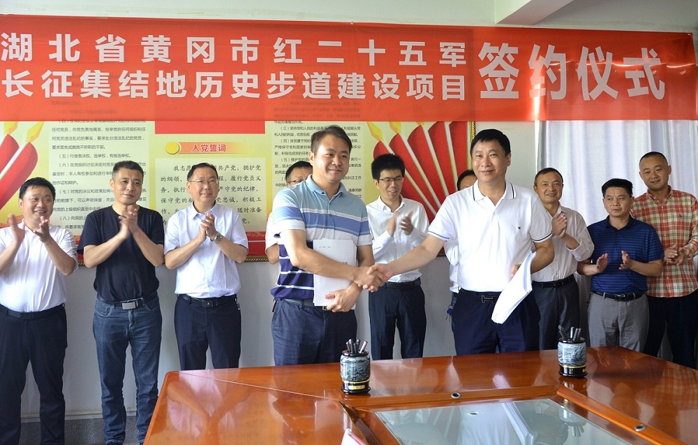 簽約儀式上,祝曙洺首先對集團中標表示祝賀,并簡要介紹了湖北省黃岡市紅二十五軍長征集結地歷史步道建設項目既是重大政治任務,又是重大歷史機遇,他要求集團公司要嚴謹規范施工,在保證施工質量的前提下,確保施工安全,確保工程順利完工,把這一造福當代、利在千秋的民心工程高標準建成建好。