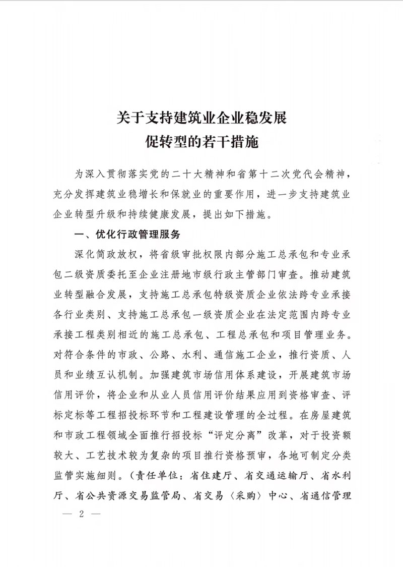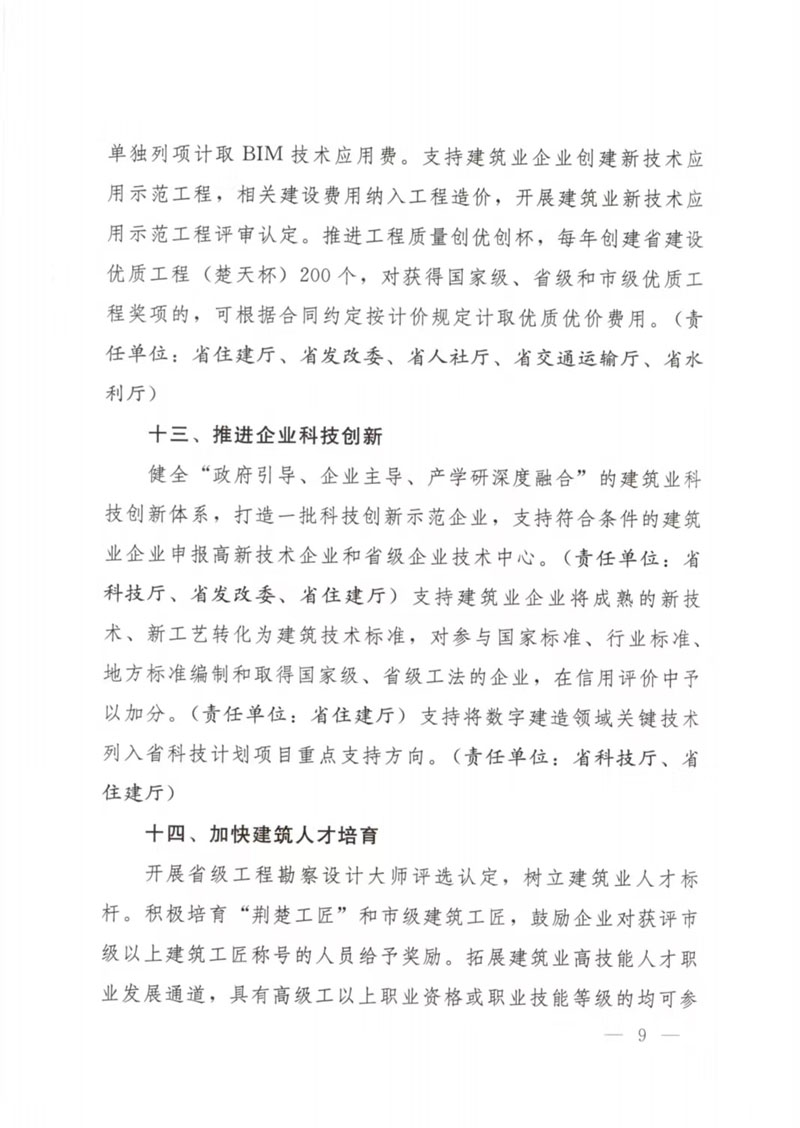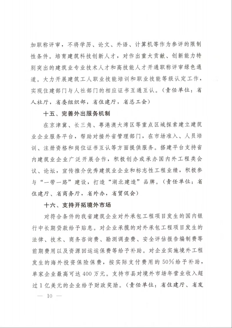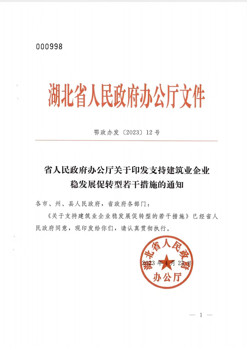湖北省人民政府辦公廳關(guān)于印發(fā)支持建筑業(yè)企業(yè)穩(wěn)發(fā)展促轉(zhuǎn)型若干措施的通知