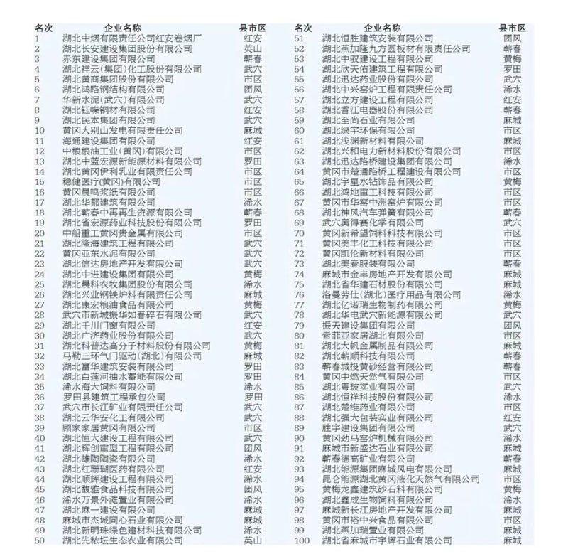 集團公司位列2023(第十屆)黃岡企業100強第2名