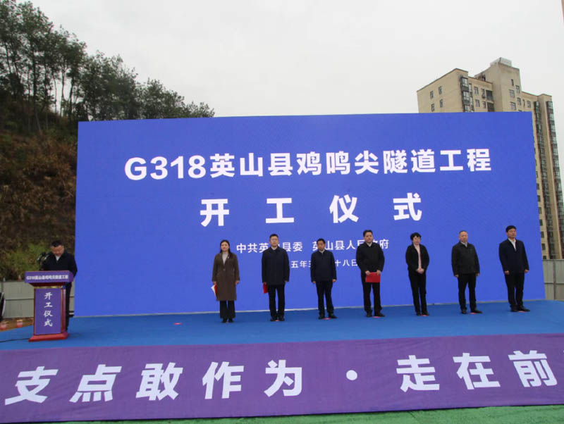 3月28日上午9時,G318英山縣雞鳴尖隧道工程開工儀式在紅山鎮宏達新天地舉行。英山縣委副書記、縣長趙小虎以及縣人民政府副縣長李建濤致辭并作重要講話,英山縣紅山鎮鎮長陳婷和中交第二航務工程局有限公司黨委常委、副總經理王建平分別對工程相關重點事項作了詳細介紹,英山縣委書記鄭光文出席儀式并宣布項目開工,英山縣委常委、政法委書記張春梅主持。長安建設集團董事長葉發保、總經理徐正新參加活動儀式。