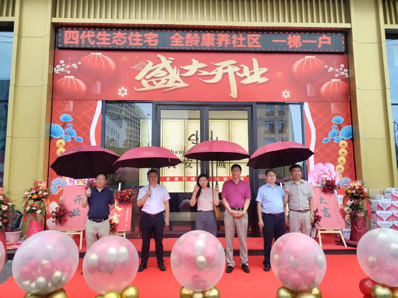 現場氣氛熱烈非凡,各界嘉賓齊聚一堂,共同見證這一重要時刻。長安建設集團黨委書記段衛昌、董事長葉發保親臨現場,在開業儀式上發表講話,分享項目理念與愿景,表達對長安新城未來發展的殷切期望。集團公司總經理徐正新、長安房產公司總經理余招剛、副經理鄭倫柏等項目管理人員,熱情地為嘉賓們詳細介紹長安新城的獨特亮點與鮮明特色,從創新的四代生態住宅設計,到全方位覆蓋各年齡層的康養配套設施,每一處細節都展現出項目的匠心獨運與人文關懷。