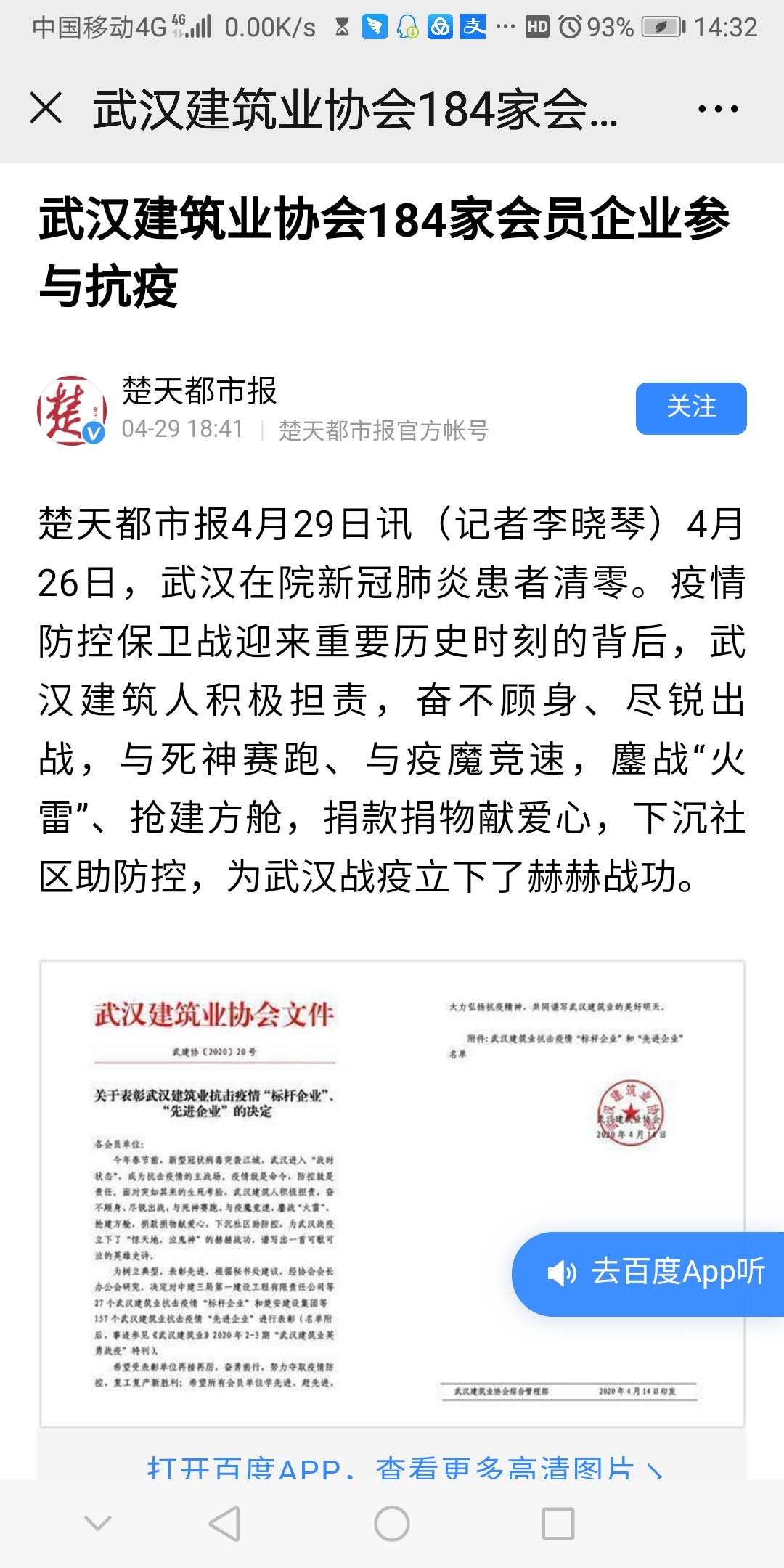 集團公司被武漢建筑業協會授予“疫情防控優秀企業”