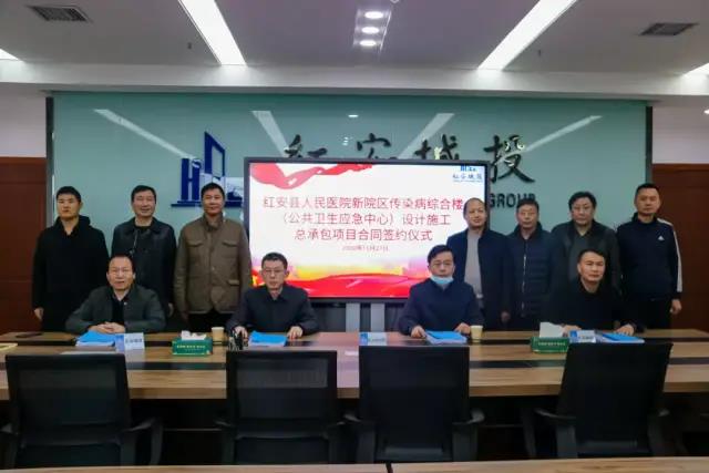 11月27日上午,紅安縣人民醫(yī)院新院區(qū)傳染病樓(公共衛(wèi)生應(yīng)急中心)設(shè)計施工總承包項目合同的簽約儀式。項目業(yè)主紅安縣人民醫(yī)院黨委書記王昌盛、院長阮應(yīng)東,代建單位紅安城投集團公司黨委書記、董事長陳俊璋,湖北長安建設(shè)集團股份有限公司總經(jīng)理葉發(fā)保現(xiàn)場簽署了項目合同。