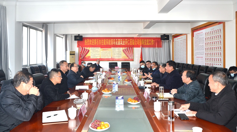 為加強住建系統(tǒng)的企業(yè)交流合作,共同促進建筑業(yè)高質(zhì)量發(fā)展,12月25日上午,黃石市住建局二級調(diào)研員馮鵬鷹、建筑業(yè)科科長劉建軍、審批科科長熊正才、市場站站長肖惠萍、建筑業(yè)協(xié)會秘書長劉建設(shè),大冶市住建局副局長陳敬乾,陽新縣住建局副局長程三送帶領(lǐng)黃石市7家建筑企業(yè)負責(zé)人赴湖北長安建設(shè)集團交流學(xué)習(xí)。黃岡市住建局總工劉俊、建筑業(yè)科科長徐宏、英山縣住建局局長黃威陪同。湖北長安建設(shè)集團董事長段衛(wèi)昌、總經(jīng)理葉發(fā)保及相關(guān)部門主管參加交流座談活動。