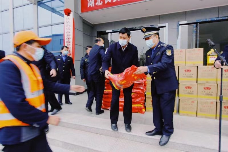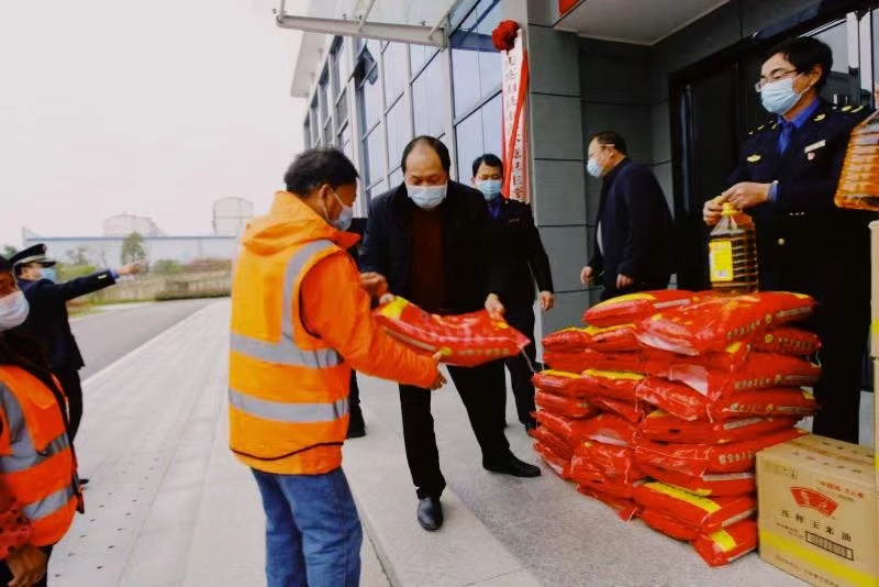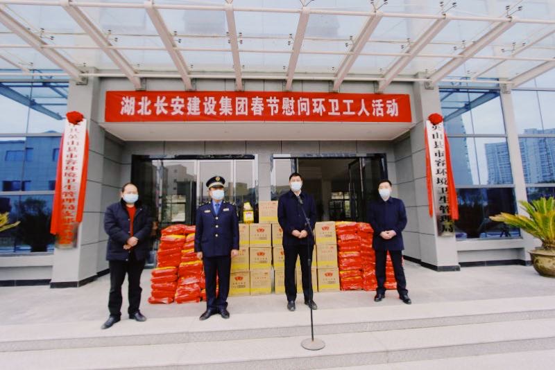 2月3日上午,湖北長安建設集團到縣環衛局開展春節慰問環衛工人活動,并送來米和油等慰問物資,價值近10萬元。集團董事長段衛昌、董事余招剛一行參加慰問活動,并現場為環衛工人發放慰問物資。縣城管執法局黨組書記、局長程子威帶領局班子成員、二級單位負責人、環衛局全體干部職工參加活動。